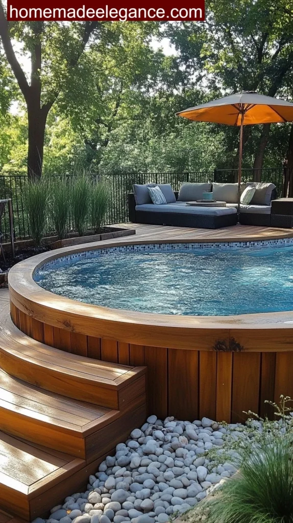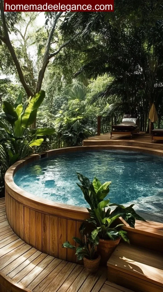 A wooden deck brings a warm, natural feel to your pool area. Use reclaimed wood or inexpensive pine boards to build a DIY deck that enhances your poolside atmosphere. With a little effort and creativity, you can achieve a rustic look that’s both inviting and budget-friendly.