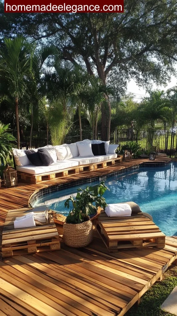 For a budget-friendly and eco-conscious solution, repurpose wooden pallets into a charming pool deck. Pallets are easy to work with, and their rustic appearance complements a wide range of outdoor styles. Sand them down, stain them, and arrange them in a layout that suits your poolside space.