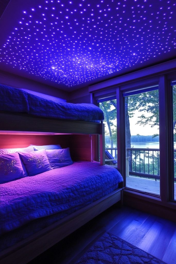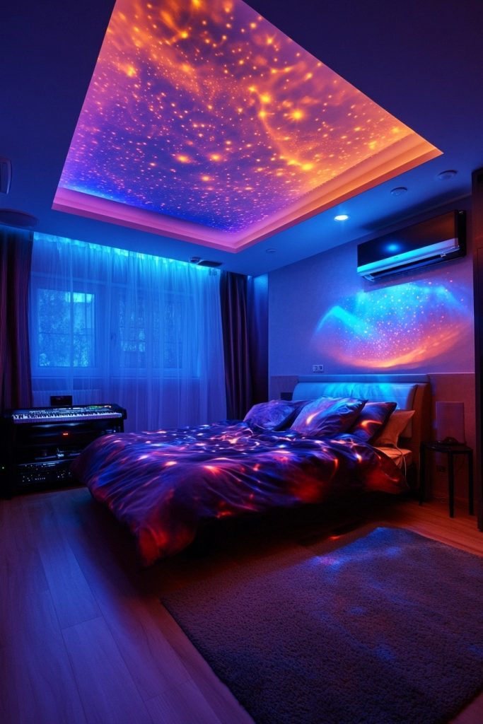 Transform your ceiling into a dynamic lighting feature with color-changing LEDs. These lights can be customized to different hues, setting the perfect mood for relaxation, studying, or entertaining.