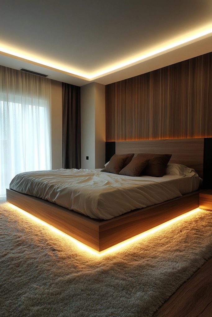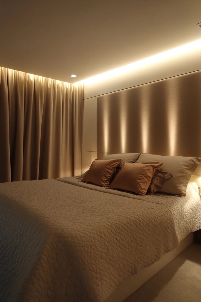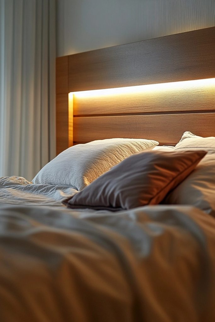 For a luxurious touch, install hidden LED strip lights behind your headboard. This soft glow enhances the depth of your bedroom decor while maintaining a sophisticated look.