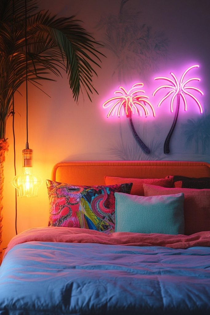 Express your personality with neon LED signs featuring inspirational quotes, symbols, or custom designs. These signs add a trendy and artistic flair to your bedroom decor.