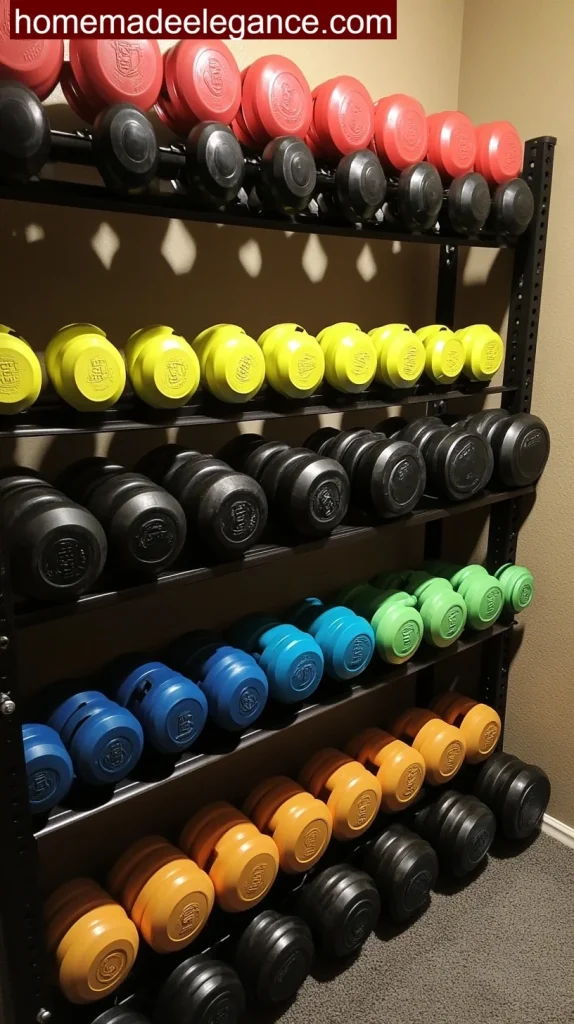 Dumbbells and weights can clutter a small space quickly. Try creative storage solutions like stackable weight racks, wall-mounted holders, or storage bins to keep everything organized. This will make your gym more efficient and visually appealing.