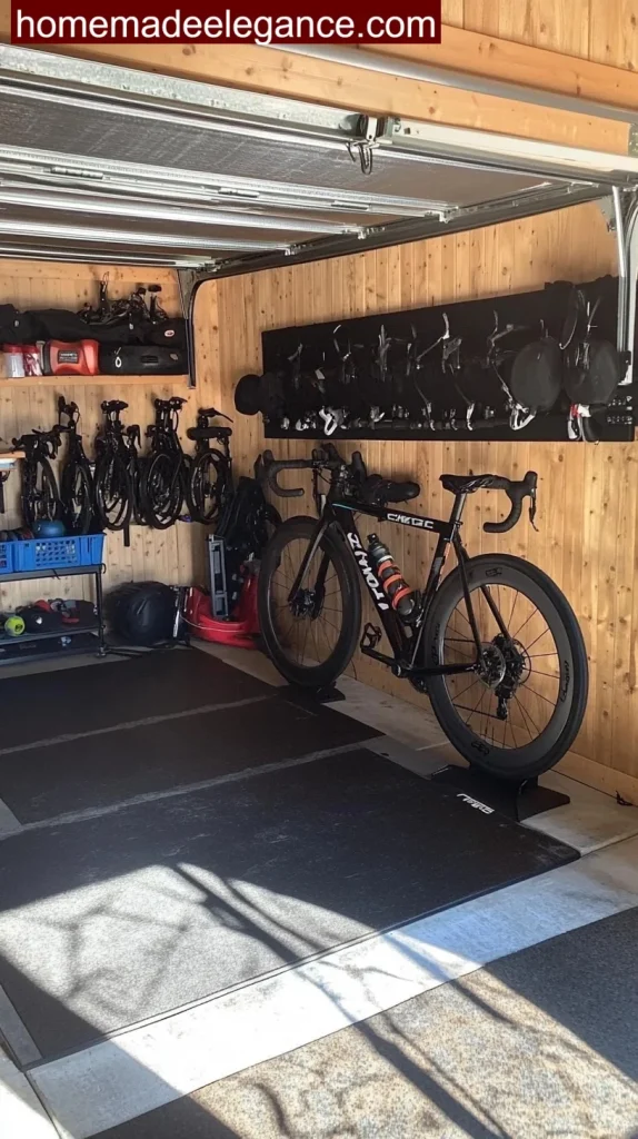 An indoor bike station is an excellent cardio addition to your garage gym. Whether you prefer a traditional bike or a stationary model, this setup offers a great way to improve endurance without taking up too much space.