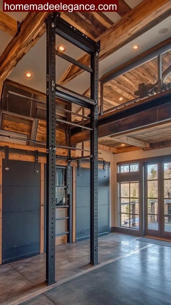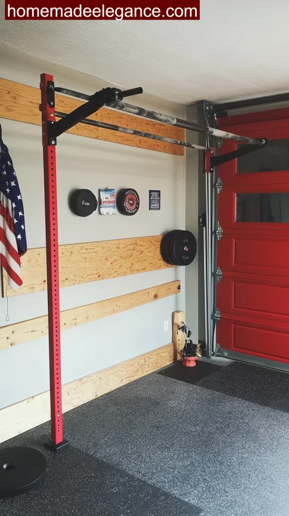Don’t overlook the potential of your garage door frame! Install pull-up or dip bars on your garage door for an easy and effective use of vertical space. This setup allows you to perform a variety of bodyweight exercises without taking up precious floor space.