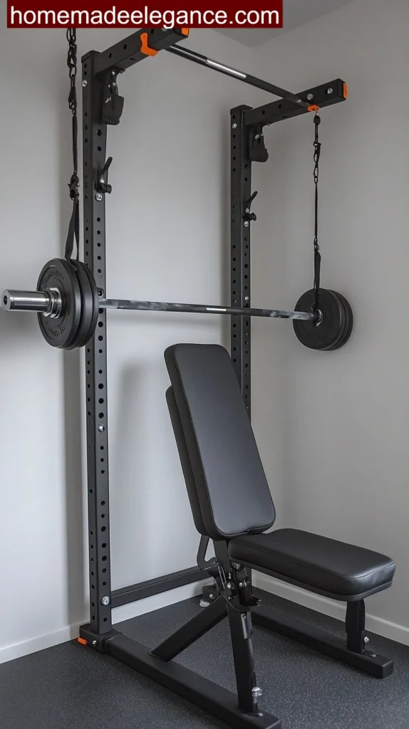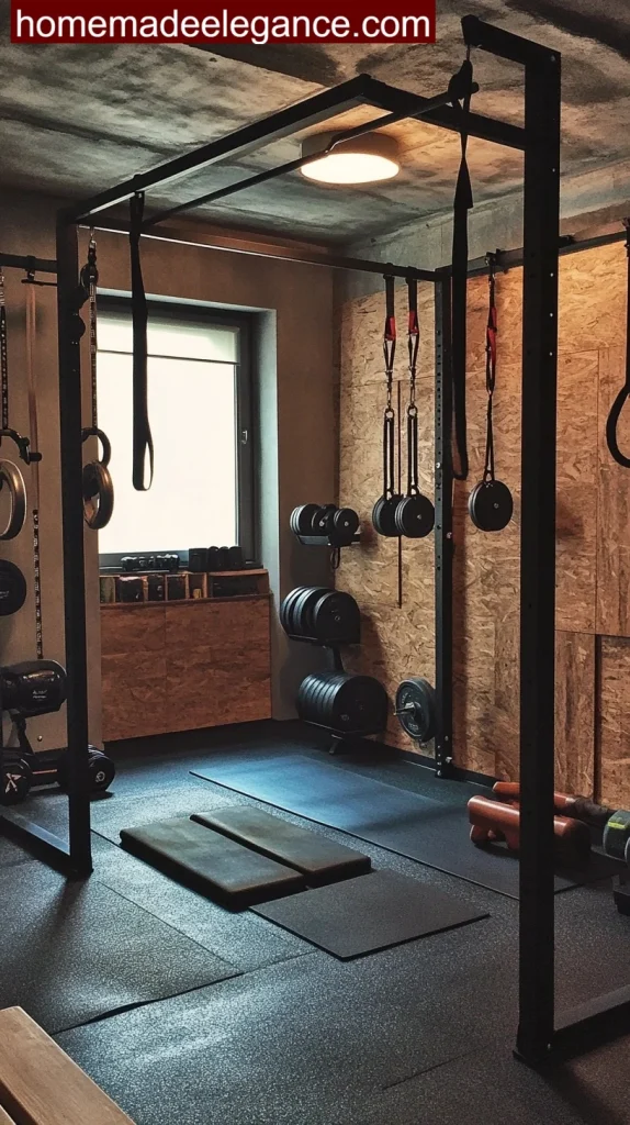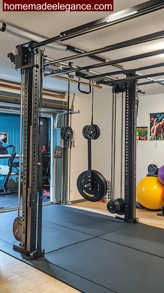 Corners often go underutilized in home gyms. Transform one corner of your garage into a functional fitness area by adding a compact station with a few essential pieces of equipment like resistance bands, kettlebells, or a small bench.
