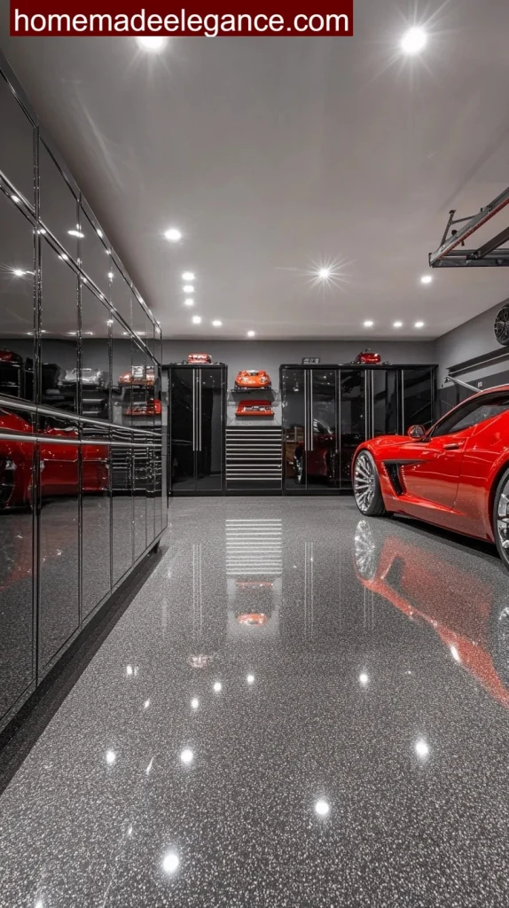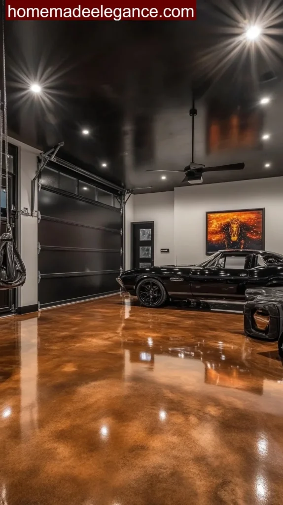 A polished concrete floor is not only durable but also adds a sleek, modern touch to your garage. This low-maintenance flooring option is perfect for high-traffic areas, offering a smooth, shiny surface that is easy to clean and looks chic.
