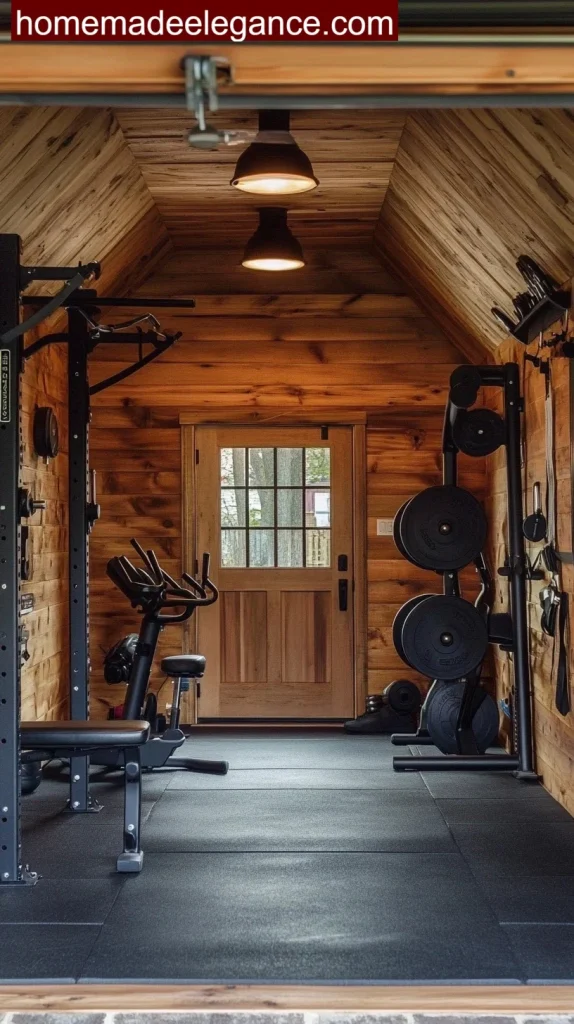 Turn your garage into the ultimate workout space by adding gym equipment, rubber flooring, and ample lighting. Use wall-mounted storage for dumbbells, yoga mats, and resistance bands to keep everything organized and easily accessible.
