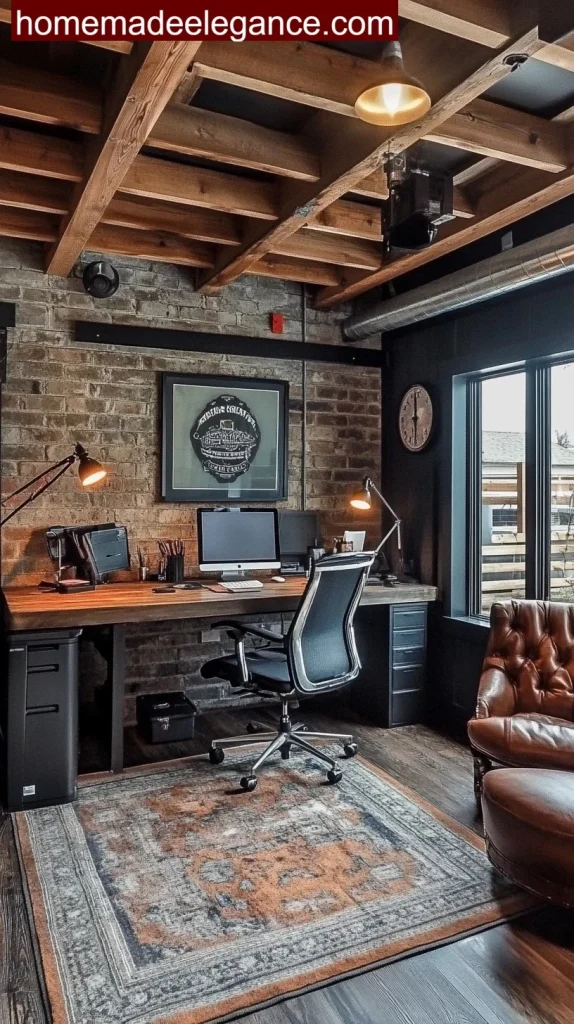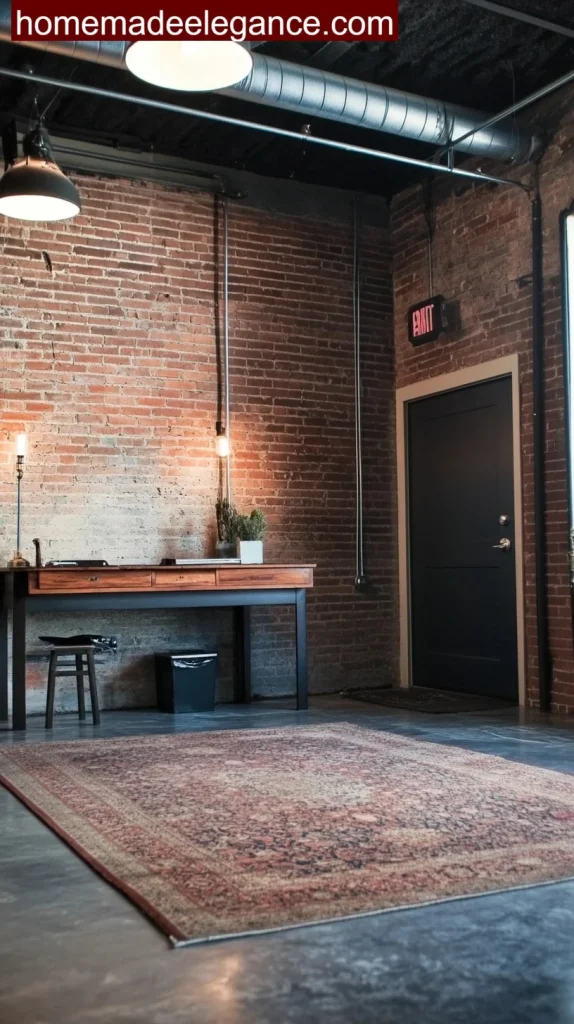 For a bold, urban look, consider an industrial-style garage. Exposed brick walls, steel shelving units, and vintage light fixtures will give your garage an edgy, industrial feel. The raw materials create a rugged charm while maintaining functionality.