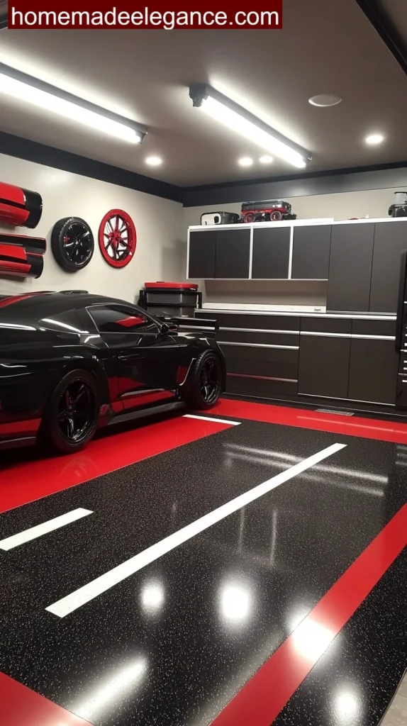 Custom flooring options like epoxy coatings or rubber tiles are both durable and stylish. These options are perfect for high-traffic areas like garages, providing a clean, smooth surface that’s easy to maintain while offering a sleek, modern look.