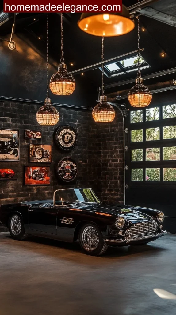 If you love all things glamorous, consider adding statement lighting to your garage. Crystal chandeliers, pendant lights, or modern sconces can elevate the space, creating a luxurious feel without compromising on functionality.