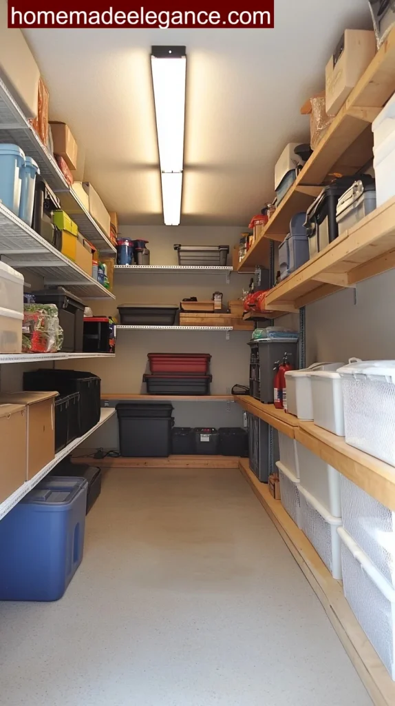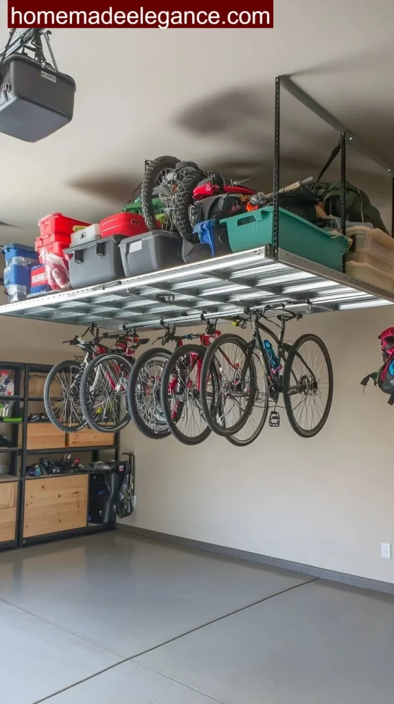 Maximize your garage’s storage capacity with overhead racks or ceiling-mounted shelves. This is an excellent way to store seasonal items, sports equipment, or bulky items that aren’t used regularly, freeing up valuable floor space.